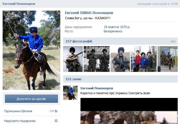 А от і сторінка диверсанта з Росії Пономарьова ВКонтакте.