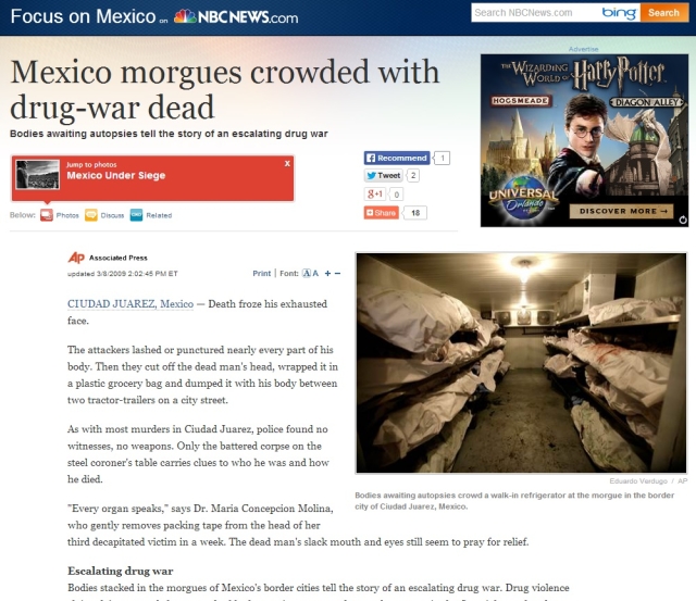 Насправді ж фото зробив журналіст видання АР 5 років тому (18 лютого 2009 року) у морзі одного із міст Мексики. Тіла — результат сутичок наркокартелів.