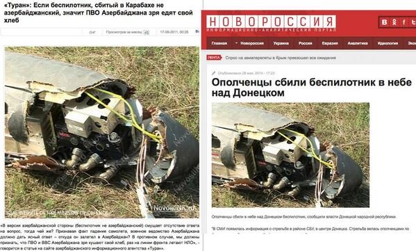 Російські ЗМІ поширили фото буцімто збитого у Донецькій області сепаратистами українського безпілотного літака-розвідувача.