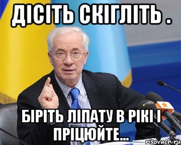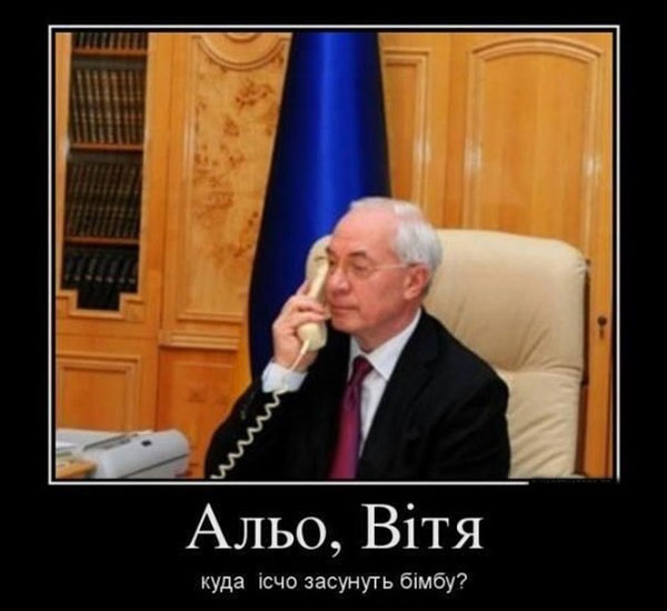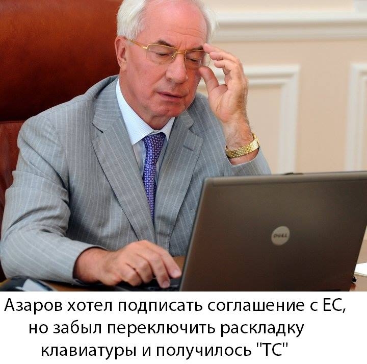 Отправил Янукович Азарова в Россию передоговариватся за газ.. Через 4 часа Азаров возвращается.. Янукович с непонимаением: “Я же тебя в Россию отправил, че ты тут делаешь?”.. ну Азаров и отвечает мол так и так, поехал.. доехал до границы, а там большими буквами : “НЕХУЙ ШАСТАТЬ”. Вот он и вернулся… Микола Яновичу, скільки разів вам говорити, шо не “НЕХУЙ ШАСТАТЬ”, а “НЕХАЙ ЩАСТИТЬ”