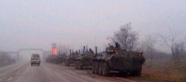 В ФБ Виолетта Лисина сообщила, что на развилке возле села Укромное действительно стоят (на данный момент) около 7 БТР ЧФ РФ.